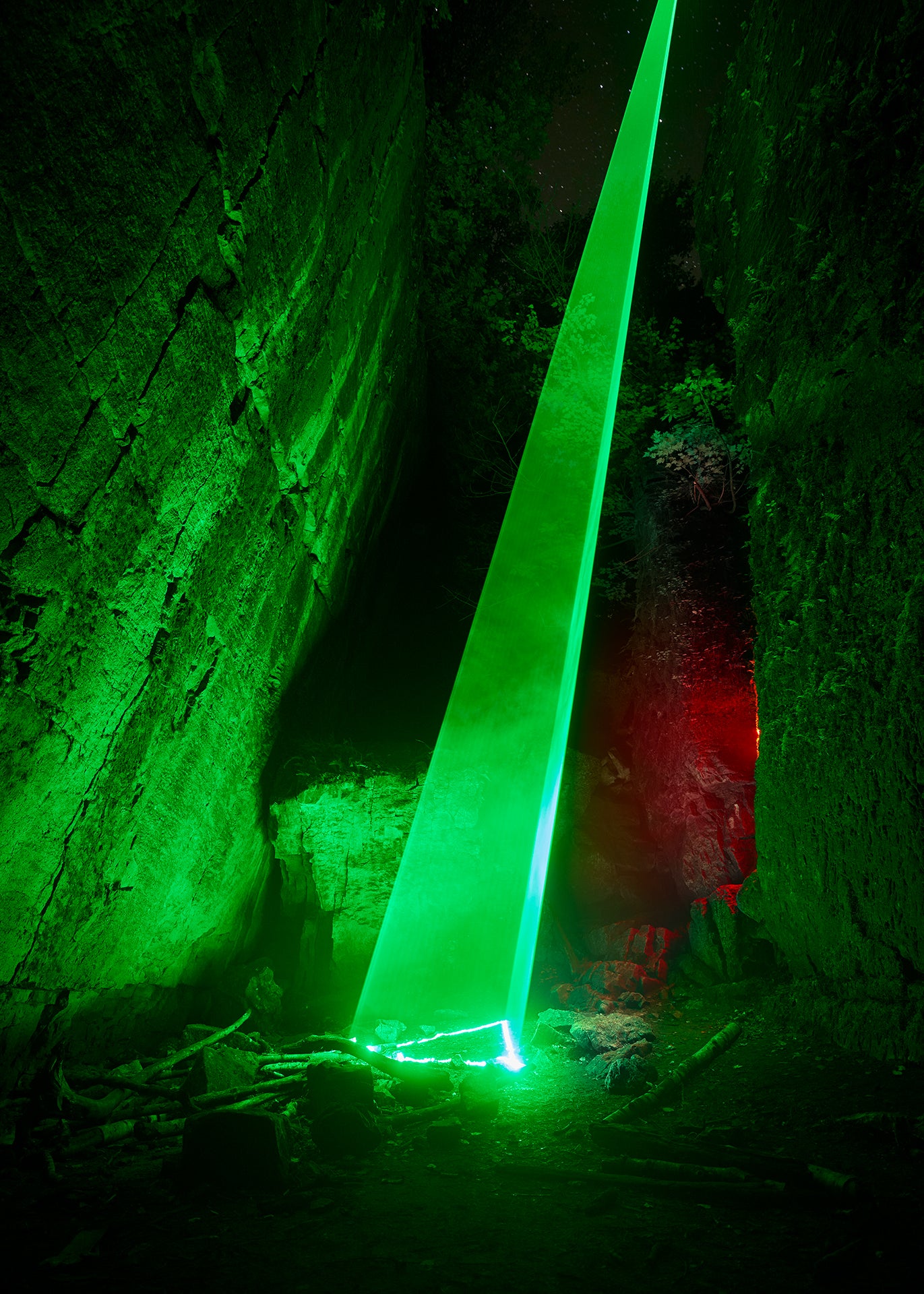 In a time under an Ontario government that deals in selling protected and valued public land, this series is inspired by the land surveyors’ self-leveling laser, a tool used to carve up undeveloped land. These photos aim to navigate a broader conversation for Canadians about our natural resources, land conservancy, and how we value our wild spaces.
